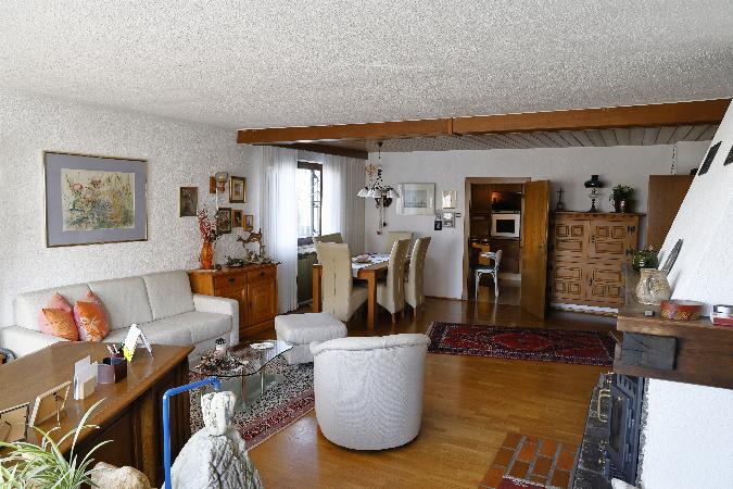 - Kaminofen im offenen Wohn-/Esszimmer
